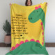 Machen Sie Geschenke geben sehr persönlich und intim mit dieser schönen Decke. Design bietet einen grünen Dinosaurier mit gelbem Hintergrund, Ihre persönliche Nachricht mit individuellen Namen.
