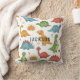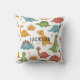Ein niedlicher und skurriler Dinosaurier wirft Kissen für ein Kinderzimmer oder Spielzimmer. Fügen Sie Ihrem Kind den Namen hinzu.