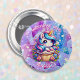 Niedliches Einhorn und Kuchen Thema Märchen lila, Rosa und Blau personalisiert Geburtstagsknopf.