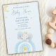 Mit unserer bezaubernden Baby Elephant Baby Shower Einladung können Sie die Freude eines kleinen unterwegs verkünden. Vor einem beruhigenden hellblauen Hintergrund steht auf einem Regenbogen ein charmanter Babyelefant, begleitet von einem Halbmond und Sternen, der eine skurrile und herzliche Szene schafft. Der staubblaue Text fügt dieser reizenden Einladung eine Touch Süße hinzu. Dieses sorgfältig gestaltete Design erfasst das Wesen der Unschuld und Vorfreude und macht es zur perfekten Wahl, um die bevorstehende Ankunft Ihres Freudenbündels zu feiern. Lade deine Lieben ein, an der Begeisterung dieser liebenswerten Baby Elephant Baby Shower Invitation teilzunehmen, eine wertvolle Einführung in einen fröhlichen Anlass.