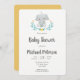 Neutrale Babydusche Einladungskarte mit niedlicher Elefantenillustrierung. Finden Sie passende Produkte in unserem Shop oder kontaktieren Sie uns.