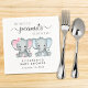 Niedliche Servietten für die Babydusche und die Babydusche mit "Two Sweet Little Peanuts Are On Your Way" in einer Mischung aus weicher grauer Typografie und einem stilvollen Drehbuch, pastellrosa und blaue Aquarellfarben eines Babyelefanten. Personalisieren Sie den Namen und das Duschdatum der künftigen Mutter in schlichter grauer Typografie.