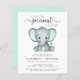 Eine niedliche, preisfreundliche und geschlechtsneutrale Babydusche mit dem Titel "A Sweet Little Peanut Is On its Way" (man kann in "seinen" oder "Ihren" Weg wechseln), die in einer Mischung aus sanfter, moderner Typografie und stilvollem Schriftsatz geschrieben ist, und einer pastellfarbenen, minzgrünen Aquarellfarbe eines Babyelefanten. Personalisieren Sie die Namen der Eltern und Duschdetails in einfacher grauer Typografie.
