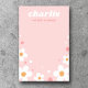 Niedliche klebrige Noten mit weißer Erdbeerblüte auf einem rosa Hintergrund und Ihr individuelle Name in einem Retro-Schriftart.
