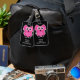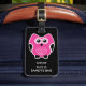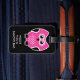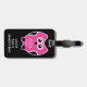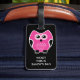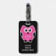 Ist hier ein niedlicher und lustiger Gepäckumbau mit einer rosa Eule auf einer schwarzen Hintergrundfarbe, die Sie zusammen mit Namenstropfenmonogramm ändern können, das, Sie personifizieren können und Ihre Selbst machen. Ersetzen Sie den Schablonennamen durch Ihre eigenen Namen- oder Monogramminitialen, die auf beiden Seiten angezeigt werden.