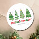 Wünschen Sie allen ein frohes Weihnachtsfest mit diesen niedlichen und farbenfrohen Weihnachtsbaum-Aufklebern mit "Merry & Bright" und 4 lustigen grünen Weihnachtsbaumen. Sie können Ihren Familiennamen ändern oder entfernen, wenn Sie es vorziehen. Die Farbpalette umfasst eine fröhliche Mischung aus Rot, Rosa und dunklen und hellen Grüntönen. Dieses Bild verkörpert die Laune und Freude der Ferienzeit. Personalisierte Freude farbenfrohe und hellrosa Weihnachtsbaumen Klassischer Rundaufkleber