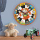 Eine farbenfrohe Wanduhr mit einer Reihe von Cartoon und Kindern, die stündlich angeordnet sind. Die Zahlen befinden sich in einer separaten Datei und können gelöscht werden, wenn Sie sie nicht benötigen. Liebliches Geschenk für ein Kind, um sein Schlafzimmer zu ergänzen oder für ein Kind, das lernt, eine Uhr zu lesen.