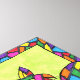 Dekorieren Sie Ihre Wände stilvoll mit diesem farbenfrohen, einzigartigen Folk Art Print. In diesem bezaubernden, skurrilen Kunstwerk sitzt diese einzigartige und farbenfrohe Katze vor einem Federgrüne Hintergrund und blickt auf den Betrachter, indem sie ihre mehrfarbigen mosaikähnlichen Markierungen zeigt, die wie Buntglas aussehen. Sie ist auch von einer detaillierten farbigen Grenze umgeben, die zu ihren Markierungen passt.