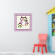 Niedliche Frühlingseule auf einem Zweig-Plakatdruck, mit einer niedlichen Frühlingseule in lila-dunkelbraun, die eine Blume in ihrem Schnabel (Rechnung) auf einem Zweig und lila karierten Rand hält. Ein bezauberndes Design für Eulenliebhaber, perfekt für Kinderzimmer-Dekoration. Kunstwerk von Trina Clark.