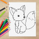 Niedlicher kleiner Fuchs mit großen Ohren und buschigem Schwanz sitzt in einer hundeähnlichen Pose. Geeignet zum Färben.