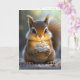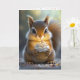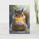 Ein niedliches Eichhörnchen hält einen Geburtstagskupcake mit wirbelfreiem Zuckerguss und strahlt mit leuchtenden Augen sanft aus. Text kann geändert werden.