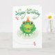 Lassen Sie Ihre Amphibienhaltung mit diesem Frosch auf einem Lilienpolster laufen, der vor ihm eine Scheibe Geburtstagskuchen anstarrt. Schickt das an alle, die Frösche Lieben und wünscht ihnen viel Spaß!