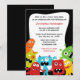 Dieses 12x18jungen-Geburtstags-Party laden hat ein niedliches buntes Monsterthema ein. An der Unterseite gibt es einige niedliche Monster, die mit Ihren leicht kundengerechten Partyinformationen in der Mitte wellenartig bewegen. Entwurf Copyrights Babystar.