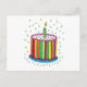 Das ist ein zeichn eines bunten Geburtstagskuchens. Der Kuchen ist mit Farben gefüllt, die ihn attraktiv machen und ein perfektes Geschenk für Kinder. Die oberen Ränder sind mit rosa Vereisung umschlossen, die Unterseite ist von rosa und lila Nippen umgeben. Eine Single-Kerze befindet sich oben auf dem Kuchen. Um den Kuchen herum gibt es Konfetti, die Feiern symbolisieren.