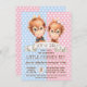 Affengeschlecht offenbart Einladungen mit einem bezaubernden Jungen in Aquarellfarben und Orang-Utan-Affen-Baby-Baby und Baby-Girl auf einem rosa und blauen Punkt-Hintergrund. Diese Affengeschlecht enthüllt Einladungen sind einfach auf Ihre Veranstaltung zugeschnitten, indem Sie einfach Ihre Details hinzufügen. Sie können die Krawatte des Bogens bewegen oder entfernen.