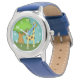Kinderuhr aus Edelstahl mit blauem Lederarmband