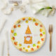 Niedliche Gnome und Ferien Herbstlaube Erntedank Party Plate. Text kann personalisiert sein. Ideal für jede Veranstaltung während der Herbstsaison.