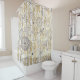 Niedliche Graue Blütendoodles Gold Streifen Design Duschvorhang