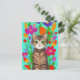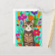 Niedliche graue Katze mit farbigen Blume Postkarte