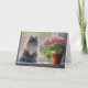 Niedliche graue persische Katze mit rosa blühende Karte