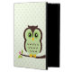 Stilvoller kundenspezifischer Foliokasten für ipads kennzeichnet eine süße vektorillustration einer Eule, die auf einem Baumast auf einem Tupfenmusterhintergrund gehockt wird.
