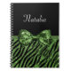 Ihr Teenagermädchen fühlt sich mit diesem schicken, grün und schwarz gestalteten Zebra-Druckheft in mädchenhaftem Luxus eingebettet, das mit einem in einen luxuriösen Bogen geklebten, sequin funkelnarben Band versehen ist. Personalisieren Sie diese glitzernden und glamourösen Tiermode-Design durch Hinzufügen ihres Namens. Flachbild, nicht Glitzer oder Band.
