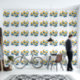 Gelbe gummigelbe Ente in blauer Kleidung in einer Wasserpfütze. Ideal für das Baby Kinderzimmer!