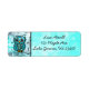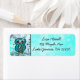 Niedliche Whimsical Hand gezogen aquamarinen Owlen Rücksendeadressen-Aufkleber.