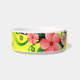 © Sunny Mars Designs. Dieses niedliche, bezaubernde kleine Haustierfutter oder Wasserschüssel bietet eine gelbe, rosa und grüne Blumenmuster von tropischen Hibiskus Blume. Personalisieren Sie es, indem Sie den Namen Ihres Hundes oder Ihrer Katze hinzufügen.