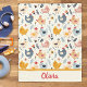Personalisierte, niedliche Hühner im Bauernmuster auf einer hellgelben Fleecedecke.