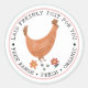 Dieses niedliche Vintage Aufkleber-Design ist perfekt für Ihre Familienverpackung oder für Eierschachteln. Das Design zeichnet sich durch eine niedliche rosa Hühnerabbildungen mit einem Blumenmotiv aus, das "frisch für Sie gelegt" und "frei, frisch, Bio" um das Design herum gewickelt ist.