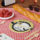Eine niedliche, kleine, gelbe und schwarze Hummel auf dem Hintergrund von Polka-Punkten ist die Grundlage für dieses niedliche Erstgeburtstagsdesign, das auf einer Vielzahl von Geburtstagsfeiern in unserem Shop erhältlich ist.