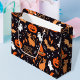 Nahtloses Muster von Halloween illustriertem Cartoon auf schwarzem Hintergrund. Zu den Figuren des Cartoons zählen Kürbis, Gespenster, Fledermäuse, Süßigkeiten, Spinnennetze und Sterne. Die Icons sind alle in einem einfachen, kartoonischen Stil gezeichnet. Das Muster wird nahtlos wiederholt, sodass es zum Füllen eines großen Bereichs wie einer Wand, einem Stoff oder einem Stück Papier verwendet werden kann, was gut für Party-Hüte, Packpapiere, Packtaschen und vieles mehr ist. Probieren Sie diesen halben Geschenksack aus, Sie werden es nicht bereuen. Sie können dieses Design auf jedes zazzle Produkt übertragen, wie Sie möchten, wenn Sie wissen, wie, oder Sie können mir eine Nachricht senden. Ich werde dieses Design für Sie übertragen.