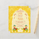Verspielte indische Hochzeitelefanten gelbe haldi Einladung Vorlage, gelbes Muster Hintergrund, niedliche Hochzeitelefanten, für haldi Einladung.