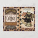 Niedliche Cat Coffee Paws Postcard Leopard Grenze, schlaue Katze, Pfotenabdrücke, üppiger Kaffee und Paradies