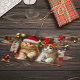 Niedliche Kätzchen mit dem Weihnachtsmann und Rentierhut 2. Zwei spielerische niedliche Pelzkätzchen mit Weihnachtsmann und Rentierhüten vor einem Weihnachtsbaum