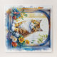Whimsical Aquarell ai art cat mit bezaubernden großen Augen in einem Fenster voller Blume.