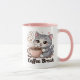 Niedliche Katze mit einer dampfenden Tasse Kaffee, umgeben von Herzen und Kaffeebohnen, mit dem Text "Kaffeepause" darunter. Ein tolles Katzendesign für Ihre Kaffeepause!