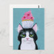 Niedliche Katze mit rosafarbenem Kuchen Postkarte