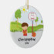 Personalisierter datierter roter u. weißer Basketballspieler, der einen Basketball mit einer Basketballband Weihnachtsverzierung hält. Ein, um zu kommen jahrelang gehütet zu werden Wunder-Weihnachtsgeschenk sure.