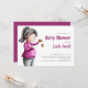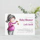 Einfache und kühne Babydusche mit einer Abbildung der Mutter, einen rosa T - Shirt zu tragen und ein Paar Babyschwellen zu halten. Illustriert und entworfen von Patricia Alvarez.