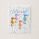 Niedliche kleine Seepferde in sanfter Farbe beim koordinierten Schwimmen! Passen Sie an, wie Sie möchten.