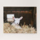 Dieses niedliche Getty Images Foto verfügt über ein neugeborenes Lamm, das auf einem Strohballen auf einem Bauernhof ruht.