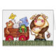 Niedliche Kuhkarte, die sagt. Kuh, die voll einen Lastwagen der Spielwaren zieht.