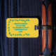 Die Vorderseite dieser Gepäckanhänger ist bereit, mit einem Set von Initialen versehen zu werden und zeigt meine bemalte Abbildung einer Kuh, die ein gelbes Bogen-Set vor einem türkisblauen Hintergrund trägt. Auf der Rückseite sind Illustrationen von morgendlichen glorreichen Blume zu sehen, und sie sind bereit, mit Ihrem Namen und Kontaktdaten personalisiert zu sein, um die türkisblaue Schrift zu koordinieren.