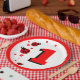 Niedlicher Ladybug mit Herz-Papier-Tellern
