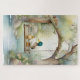 Niedliche Land Aquarell Enten auf einer Schaukel. Schönes Aquarellpuzzle.