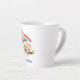 Personalisierte latte Tasse mit einer Illustration mit einem lustigen braunen Faultier, das sich glücklich auf einem Baumzweig ausbreitet. Ein farbenfroher Regenbogen hinter ihm, zusammen mit einer rosa Sonne, die über den Kopf schwebt. Niedlich, bezaubernd und trendig.