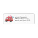 Adressetiketten mit einem niedlichen roten Aquarellwagen. Herz und Blume im Rücken tragen. Ich Liebe u, auf der Seite geschrieben. Whimsical und bezaubernd. Hellrosa gemusterter Hintergrund.