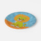Einzigartiger Löwe im Cartoon zeichnend auf Aquarell in Orange und Blau. Maßgeschneiderte Teller aus Zierpapier. Party-Dekor. Geschenk für Löwen- und Safari-Liebhaber.